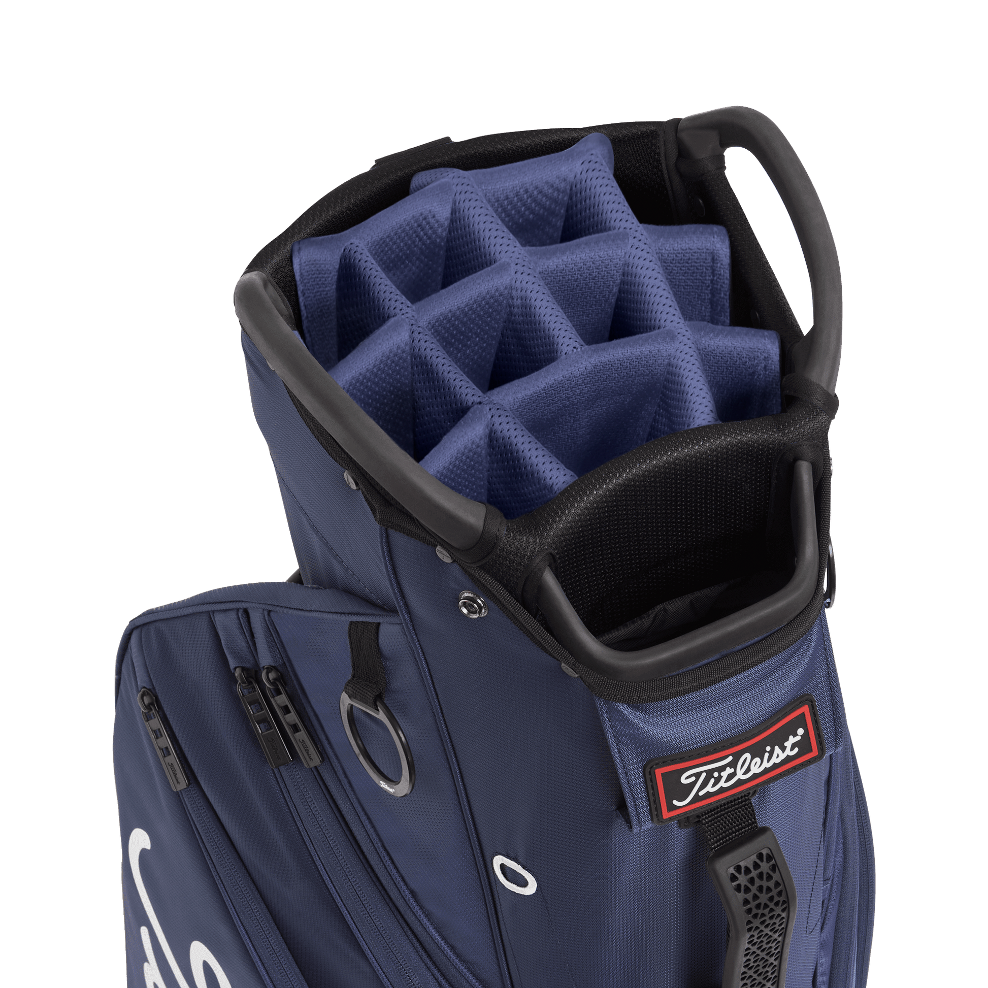 Titleist Cart 14 on kevyt kärrykassi, joka on suunniteltu tarjoamaan golfareille optimaalista säilytystä ja kätevyyttä kentällä. Symmetrinen muotoilu ja 14-osainen yläosa integroiduilla kahvoilla tekevät tästä kassista helpon käsittelyn ja mailojesi organisoinnin.